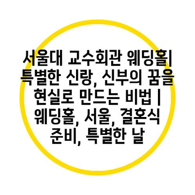 ✅ 서울대 교수회관에서의 특별한 결혼식 준비에 대해 자세히 알아보세요.