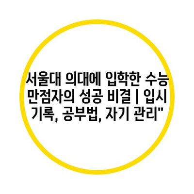 서울대 의대에 입학한 수능 만점자의 성공 비결은 무엇일까요?