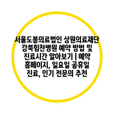 서울도봉의료법인 상원의료재단 강북힘찬병원 예약 방법 및 진료시간 알아보기 | 예약 홈페이지, 일요일 공휴일 진료, 인기 전연락 추천 에 대해 자주 묻는 질문 TOP 5