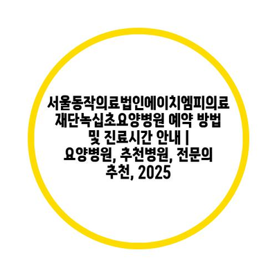 ✅ 서울동작의료법인에이치엠피의료재단녹십초요양병원의 예약 절차를 자세히 알아보세요.