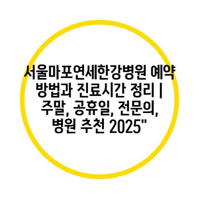 서울마포연세한강병원 예약 방법과 진료시간 정리 | 주말, 공휴일, 전연락, 병원 추천 2025