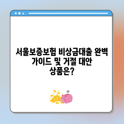 서울보증보험 비상금대출의 개요, 거절 시 대안상품에 대해 자세히 알아보세요. 모든 조건과 절차를 쉽게 이해할 수 있습니다.