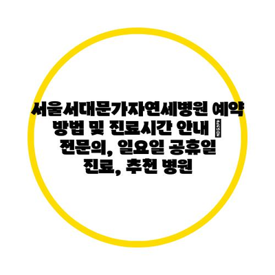 서울서대문가자연세병원 예약 방법 및 진료시간 공지 | 전연락, 일요일 공휴일 진료, 추천 병원 에 대해 자주 묻는 질문 TOP 5