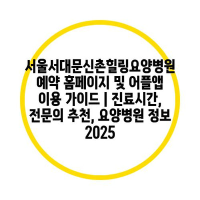 ✅ 서울서대문신촌힐링요양병원 예약 방법과 전문의 정보를 지금 바로 확인해 보세요.