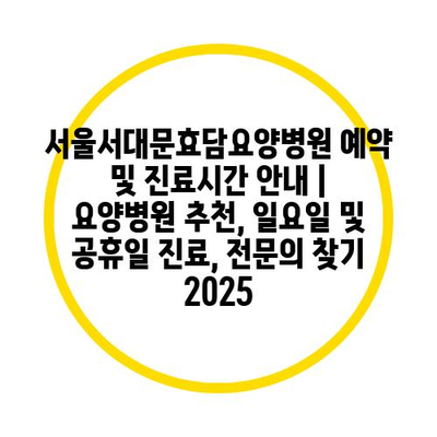 서울서대문효담요양병원 예약 및 진료시간 공지 | 요양병원 추천, 일요일 및 공휴일 진료, 전연락 찾기 2025 에 대해 자주 묻는 질문 TOP 5