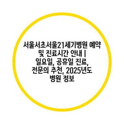 서울서초서울21세기병원 예약 및 진료시간 공지 | 일요일, 공휴일 진료, 전연락 추천, 2025년도 병원 정보 에 대해 자주 묻는 질문 TOP 5