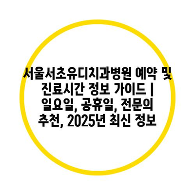서울서초유디치과병원 예약 및 진료시간 정보 설명서 | 일요일, 공휴일, 전연락 추천, 2025년 최신 정보 에 대해 자주 묻는 질문 TOP 5