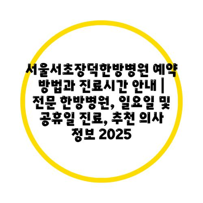 서울서초장덕한방병원 예약 방법과 진료시간 공지 | 전문 한방병원, 일요일 및 공휴일 진료, 추천 의사 정보 2025 에 대해 자주 묻는 질문 TOP 5