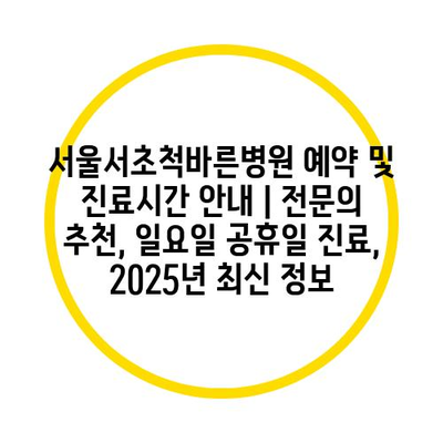 서울서초척바른병원 예약 및 진료시간 공지 | 전연락 추천, 일요일 공휴일 진료, 2025년 최신 정보 에 대해 자주 묻는 질문 TOP 5