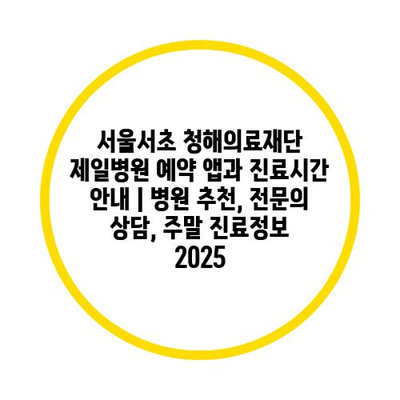 서울서초 청해의료재단 제일병원 예약 앱과 진료시간 안내 | 병원 추천, 전문의 상담, 주말 진료정보 2025