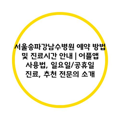✅ 서울송파강남수병원의 예약 방법을 자세히 알아보세요!