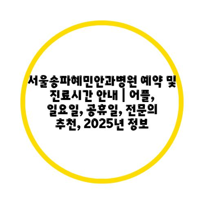서울송파혜민안과병원 예약 및 진료시간 공지 | 어플, 일요일, 공휴일, 전연락 추천, 2025년 정보 에 대해 자주 묻는 질문 TOP 5