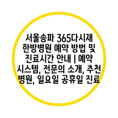서울송파 365다시재 한방병원 예약 방법 및 진료시간 공지 | 예약 시스템, 전연락 소개, 추천 병원, 일요일 공휴일 진료에 대해 자주 묻는 질문 TOP 5