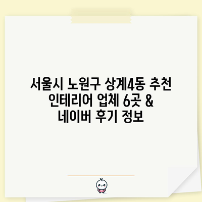 서울시 노원구 상계4동 추천 인테리어 업체 6곳 & 네이버 후기 정보