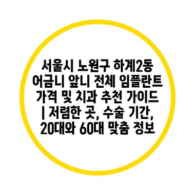 서울시 노원구 하계2동 어금니 앞니 전체 임플란트 가격 및 치과 추천 가이드 | 저렴한 곳, 수술 기간, 20대와 60대 맞춤 정보