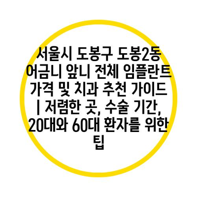 최근 임플란트에 대한 관심이 높아지면서, 많은 사람들이 치료를 생각하고 있습니다. 특히, 도봉구에서 임플란트를 계획 중인 분들은 평균 가격에 대해 궁금해할 것입니다. 도봉구에서 임플란트를 받기 위해서는 치료 비용과 더불어 의료기관의 신뢰도도 중요한 요소입니다.