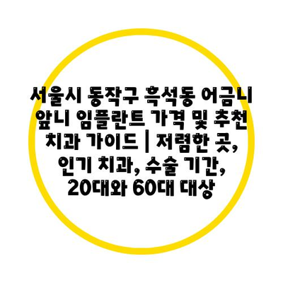 서울시 동작구 흑석동에서 어금니와 앞니 임플란트를 생각하고 계신다면, 가격과 추천 치과에 대한 정보가 필수적입니다.