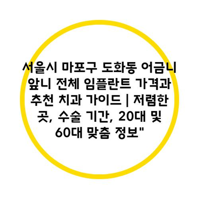 서울시 마포구 도화동 어금니 앞니 전체 임플란트 가격과 추천 치과 가이드 | 저렴한 곳, 수술 기간, 20대 및 60대 맞춤 정보”