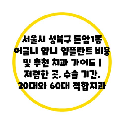서울시 성북구 돈암1동에서 임플란트를 선택할 경우, 비용 비교와 치과의 평판 등을 고려해야 합니다. 적정 가격이면서도 긍정적인 후기를 가진 치과를 선택하는 것이 중요하며, 수술 후 관리와 동안의 변화를 지원하는 치과를 찾는 것이 좋습니다.