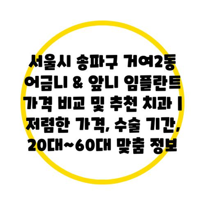 서울시 송파구 거여2동에서 어금니 및 앞니 임플란트 비용을 비교하고 추천 치과를 찾는 것은 중요한 결정입니다.