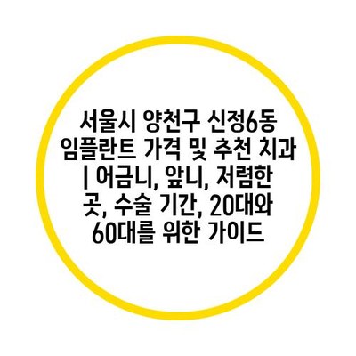 서울시 양천구 신정6동 임플란트 가격 및 추천 치과 | 어금니, 앞니, 저렴한 곳, 수술 기간, 20대와 60대를 위한 가이드