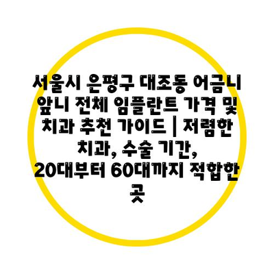 서울시 은평구 대조동 어금니 앞니 전체 임플란트 가격 및 치과 추천 가이드 | 저렴한 치과, 수술 기간, 20대부터 60대까지 적합한 곳