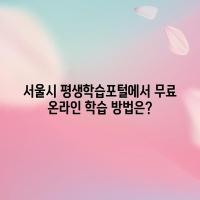 💡 서울시 평생학습포털에서 무료 강의를 쉽게 이용하는 방법을 알아보세요. 💡