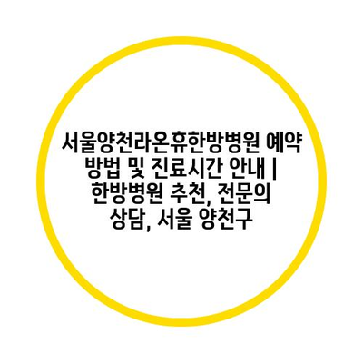 ✅ 서울양천라온휴한방병원의 예약 방법과 진료시간을 자세히 알아보세요.