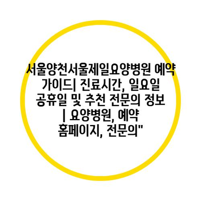 서울양천서울제일요양병원 예약 설명서| 진료시간, 일요일 공휴일 및 추천 전연락 정보 | 요양병원, 예약 홈페이지, 전연락”에 대해 자주 묻는 질문 TOP 5