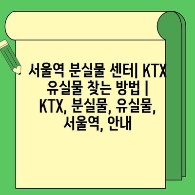 걱정하지 마세요! 서울역에는 분실물 센터가 운영되고 있으며, KTX 유실물 또한 효과적인 방법으로 찾을 수 있습니다.