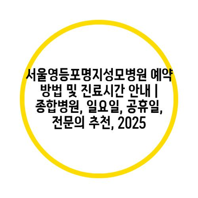 서울영등포명지성모병원 예약 방법 및 진료시간 공지 | 종합병원, 일요일, 공휴일, 전연락 추천, 2025에 대해 자주 묻는 질문 TOP 5