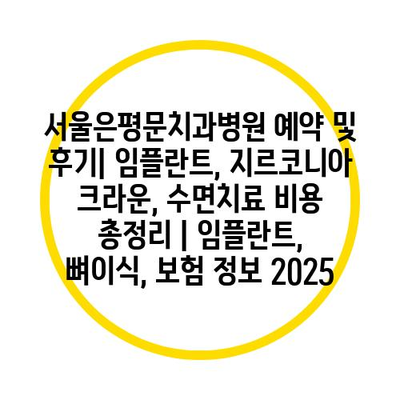 서울은평문치과병원 예약 및 후기| 임플란트, 지르코니아 크라운, 수면치료 비용 총정리 | 임플란트, 뼈이식, 보험 정보 2025에 대해 자세히 알아보겠습니다.