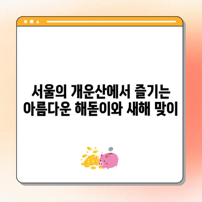 이제 여러분도 개운산 해돋이에 도전해 보세요. 서울에서 가장 아름다운 새해 맞이를 경험하고, 그 순간을 친구나 가족과 나누며 의미 깊은 한 해를 시작할 수 있습니다. 자연과 함께, 여러 사람들과의 교감 속에서 새해를 기쁘게 맞이할 수 있는 기회를 절대 놓치지 마시기 바랍니다.