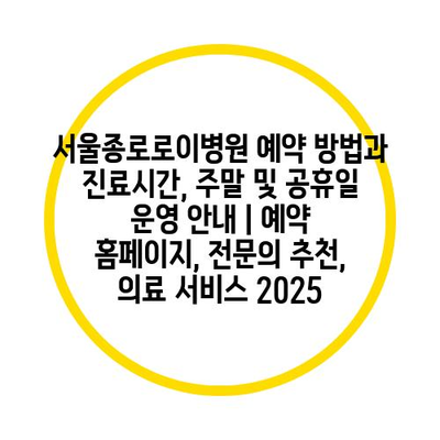 서울종로로이병원 예약 방법과 진료시간, 주말 및 공휴일 운영 공지 | 예약 홈페이지, 전연락 추천, 의료 서비스 2025 에 대해 자주 묻는 질문 TOP 5