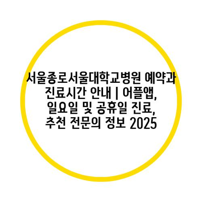 서울종로서울대학교병원 예약과 진료시간 공지 | 어플앱, 일요일 및 공휴일 진료, 추천 전연락 정보 2025
