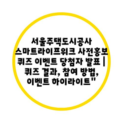 서울주택도시공사 스마트라이프위크 사전홍보 퀴즈 이벤트 당첨자 발표 | 퀴즈 결과, 참여 방법, 이벤트 하이라이트에 대해 자주 묻는 질문 TOP 5