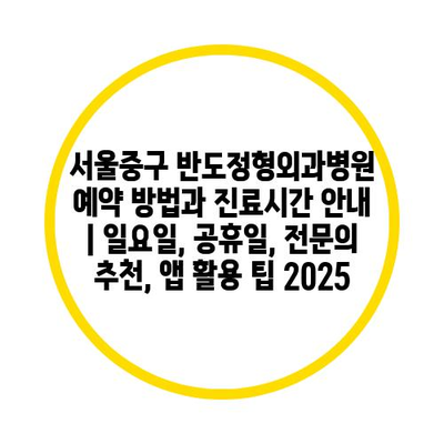 서울중구 반도정형외과병원 예약 방법과 진료시간 공지 | 일요일, 공휴일, 전연락 추천, 앱 활용 팁 2025 에 대해 자주 묻는 질문 TOP 5