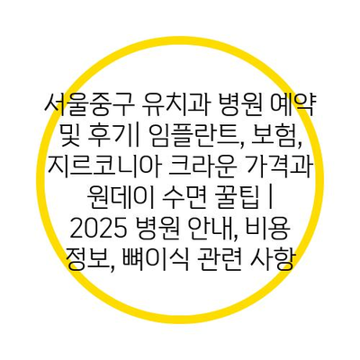 서울중구 유치과 병원 예약 및 후기| 임플란트, 보험, 지르코니아 크라운 가격과 원데이 수면 꿀팁 | 2025 병원 안내, 비용 정보, 뼈이식 관련 사항