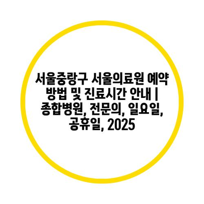 서울중랑구 서울의료원 예약 방법 및 진료시간 공지 | 종합병원, 전연락, 일요일, 공휴일, 2025 에 대해 자주 묻는 질문 TOP 5