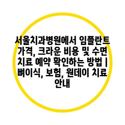 서울치과병원에서 임플란트 가격, 크라운 비용 및 수면 치료 예약을 확인하는 방법에 대해 알아보겠습니다.