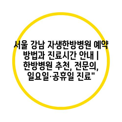 서울 강남 자생한방병원 예약 방법과 진료시간 안내 | 한방병원 추천, 전문의, 일요일·공휴일 진료”