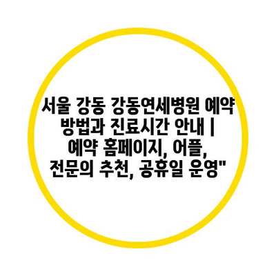 서울 강동 강동연세병원 예약 방법과 진료시간 안내 | 예약 홈페이지, 어플, 전문의 추천, 공휴일 운영”