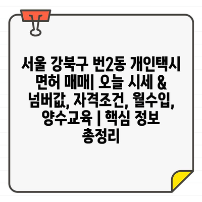 서울 강북구 번2동 개인택시 면허 매매| 오늘 시세 & 넘버값, 자격조건, 월수입, 양수교육 | 핵심 정보 총정리 에 대해 자주 묻는 질문 TOP 5