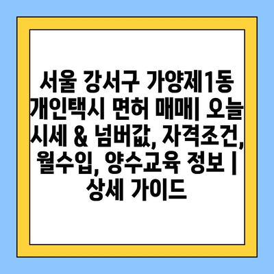 ✅ 서울 강서구 가양제1동 개인택시 면허 매매 시세, 넘버값, 자격조건, 월수입, 양수교육 등 상세 정보를 한눈에 확인하세요!