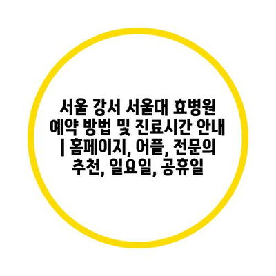 ✅ 서울 강서 서울대 효병원 예약 방법을 자세히 알아보세요.