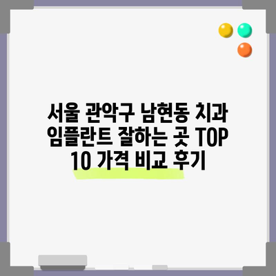 서울 관악구 남현동에서 인기 있는 치과들을 선정하여 그들의 임플란트 가격을 비교해 보았습니다. 아래는 여러 치과의 기준 가격과 후기를 통한 신뢰도입니다.