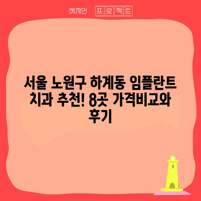 서울 노원구 하계동에서 임플란트를 고려하고 계신 분들을 위해, 이번 글에서는 추천 치과 8곳과 그들의 가격, 서비스, 후기 등을 비교하여 정리해보았습니다. 임플란트는 건강과 미소에 큰 영향을 미치는 만큼, 신중한 선택이 필요합니다. 전국 평균 임플란트 가격 정보도 함께 알아보며 하계동 내에서의 최적의 치과를 찾는 데 도움을 드리겠습니다.