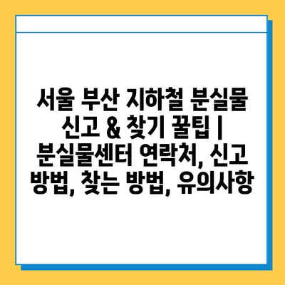 서울 부산 지하철 분실물 신고, 빠르고 정확하게!