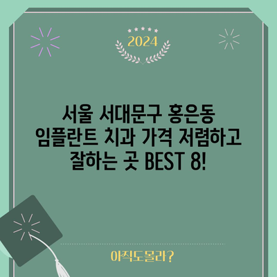 서울 서대문구 홍은동에서 임플란트 치과를 찾고 계신가요? 임플란트 치료를 계획 중이시라면 치과 선택이 매우 중요합니다. 저 또한 여러 치과를 비교하며 고민한 경험이 있습니다. 그래서 이번 블로그 포스팅에서는 서울 서대문구 홍은동에서 임플란트 치료를 받고자 하는 분들을 위해 가격이 합리적이면서 후기도 좋은 추천 치과 8곳을 소개해 드리겠습니다. 이 모든 정보는 네이버 플레이스, 맘 카페, 그리고 건강보험심사평가원의 비급여 진료비 데이터를 참고하여 꼼꼼히 선정했습니다. 편안한 마음으로 임플란트 치료를 받으시기 바랍니다!