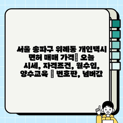 ✅ 서울 송파구 위례동 개인택시 면허, 얼마에 매매될까요? 최신 시세와 면허 취득 정보를 확인하세요!